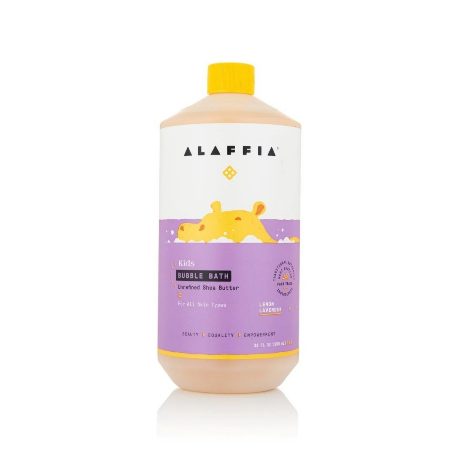 Alaffia’s naturally foaming, non-irritating, gentle bubble bath contains moisturizing shea butter to nourish and soften your baby’s skin. Handmade with protective shea leaf and essential oils for relaxing, natural and clean fun!Key Ingredients:- Lemon Balm (soothing, antioxidant)- Shea Leaf Extract (antioxidant, antibacterial)- Handcrafted Shea Butter (moisturizing, protective, emollient)Calming Lemon-Lavender is scented with pure lavender (lavendula grosso) essential oil from France and lemon extract.