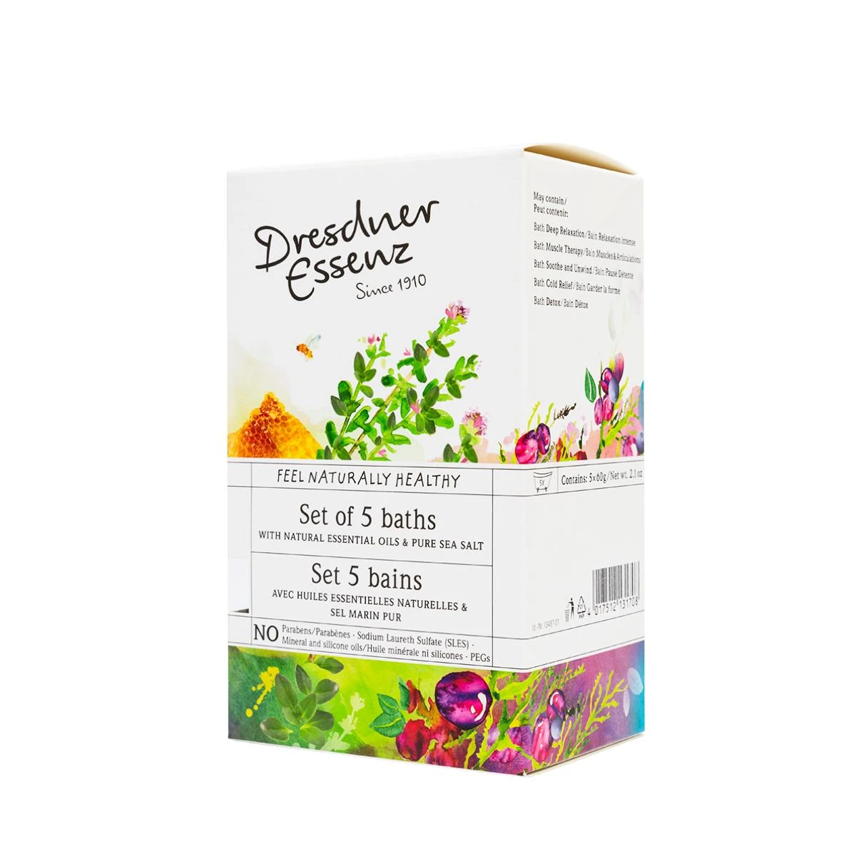 Try five types of Dresdner Essenz bath soaks and discover your favorite.