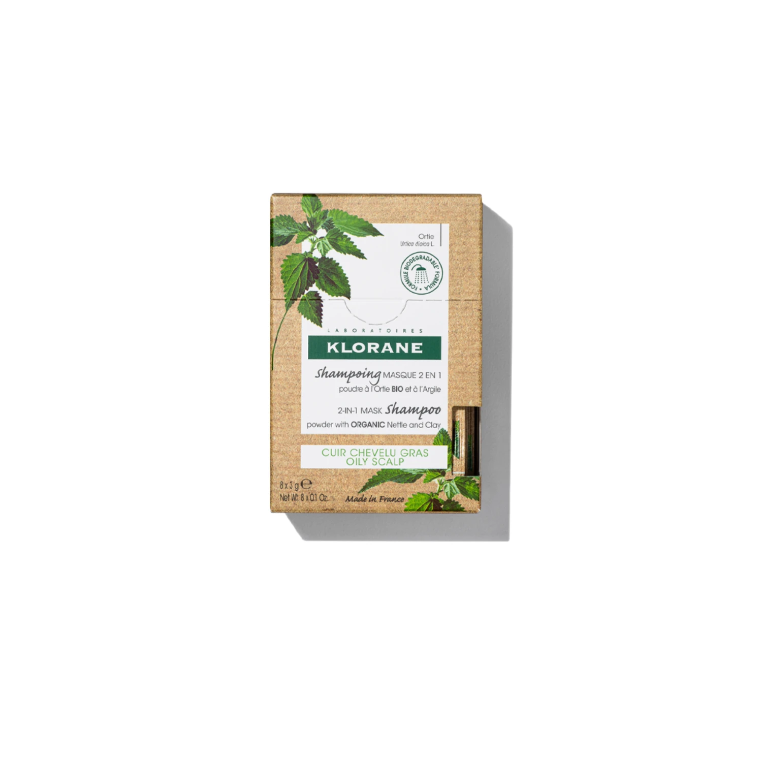 Klorane Nettle 2-in-1Mask Shampoo is a deep hair and scalp treatment that will reduce and control excess oil production. This plant-based, deep oil-control treatment transforms to foam on contact with water and targets oily roots to leave hair cleaner, and longer.